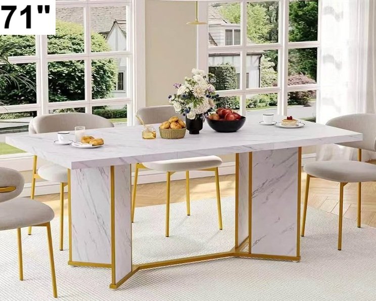 onbrill Rectangular Dining Table - 71"x29.53"x 35.43" - white marble (model: ca-mp-003a)