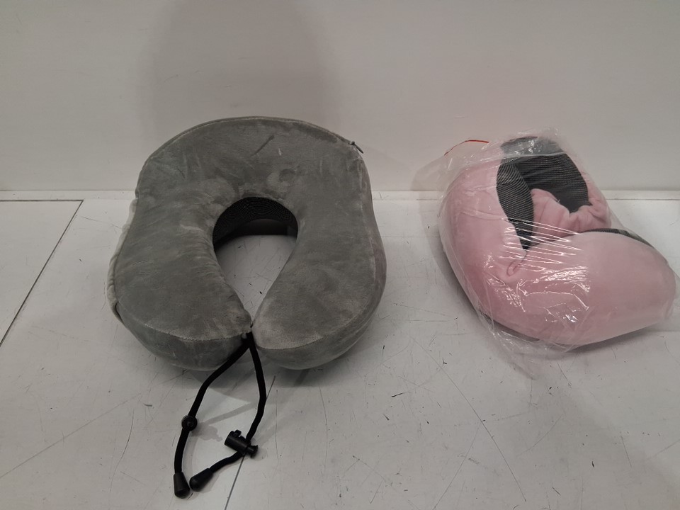 2pk urnexttour memory foam neck pillows with small pocket - 8.9" x 5.9" x 11" - Grey/pink/black
