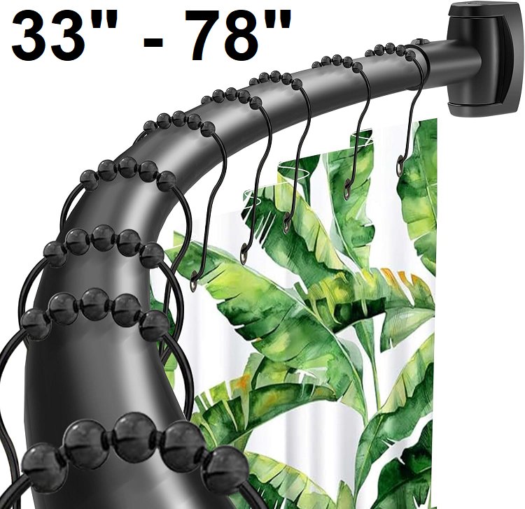 CURVED ADJUSTABLE NEVER RUST SHOWER CURTAIN ROD - 33" - 78" - BLACK