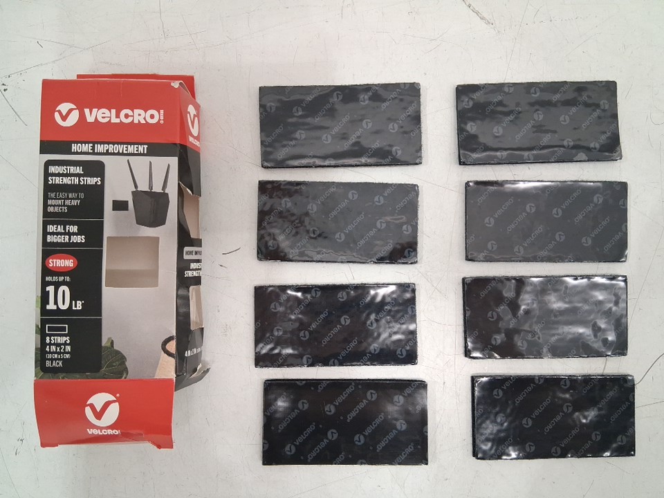 8PK VELCRO Brand Heavy Duty Fasteners Strips with Adhesive - 4" X 2" - BLACK