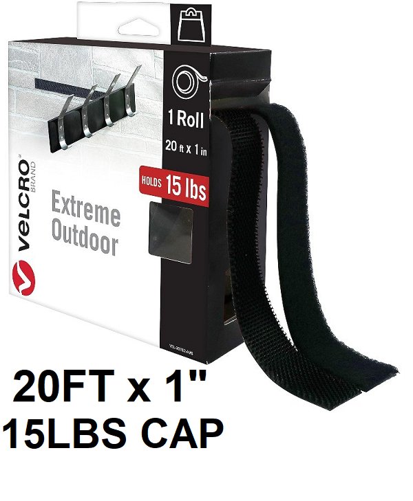 VELCRO BRAND EXTREME OUTDOOR MOUNTING TAPE - 20FT X 1" - 15LBS CAP - BLACK