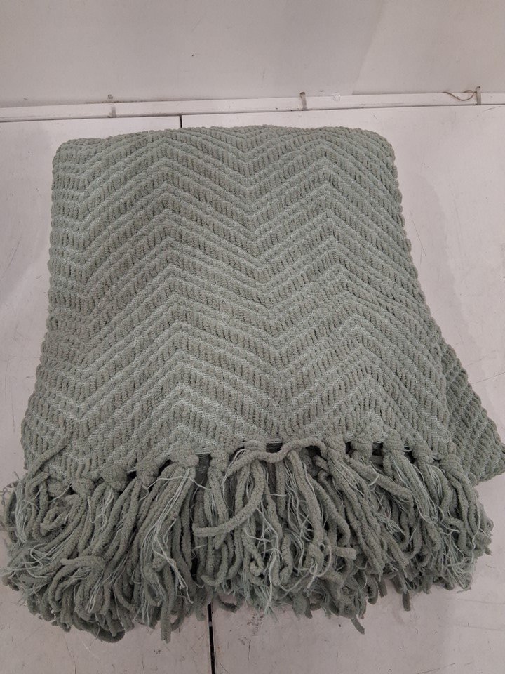 battilo light weight textured throw blanket with end tassels - 50" x 60" - sage green