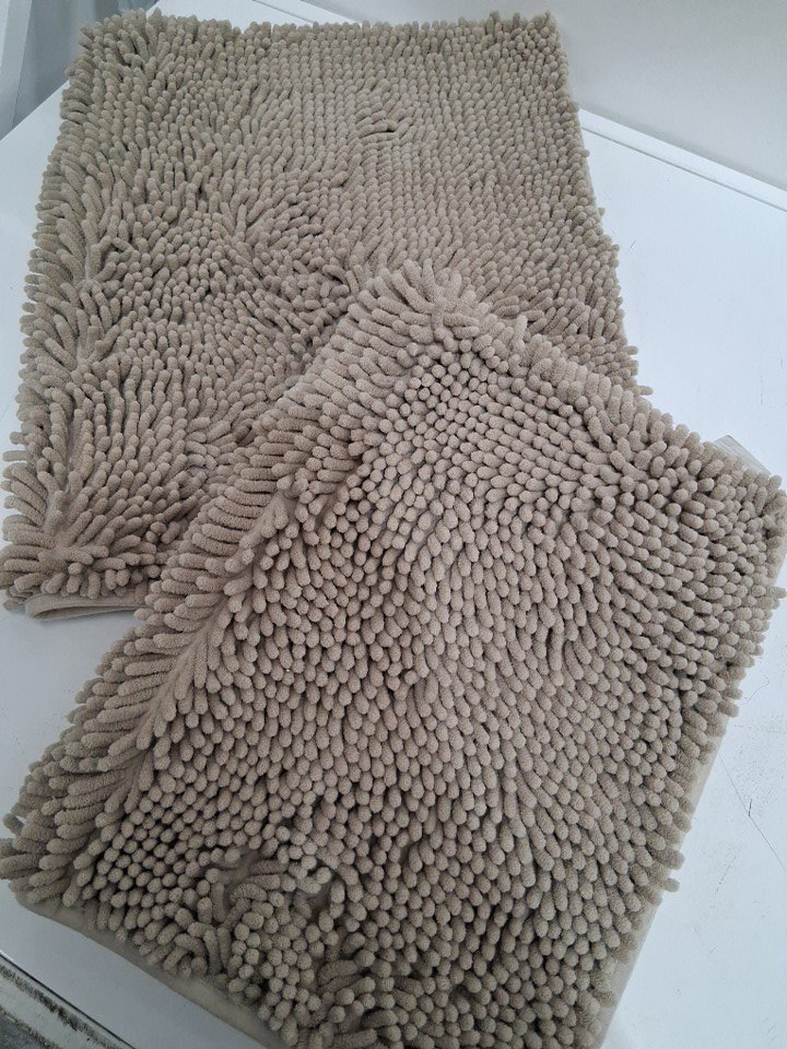 2pc microfiber noodle bath mats - 20" x 30" and 17" x 24" - beige