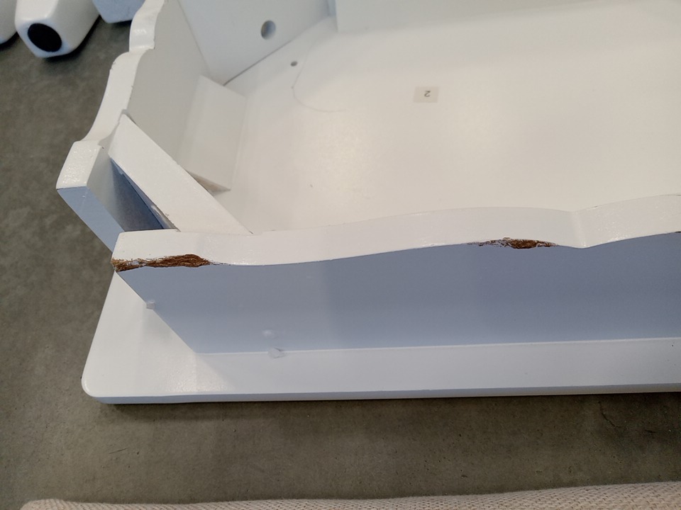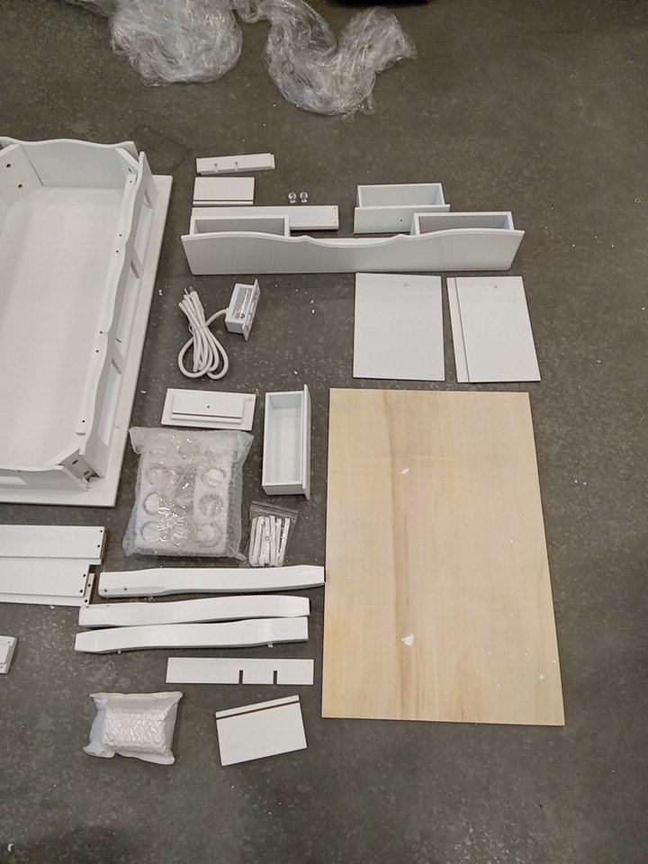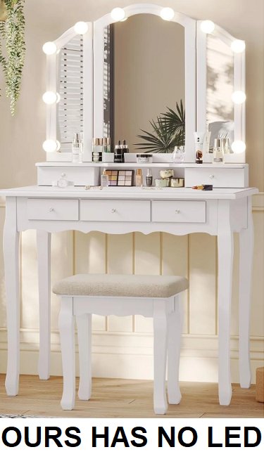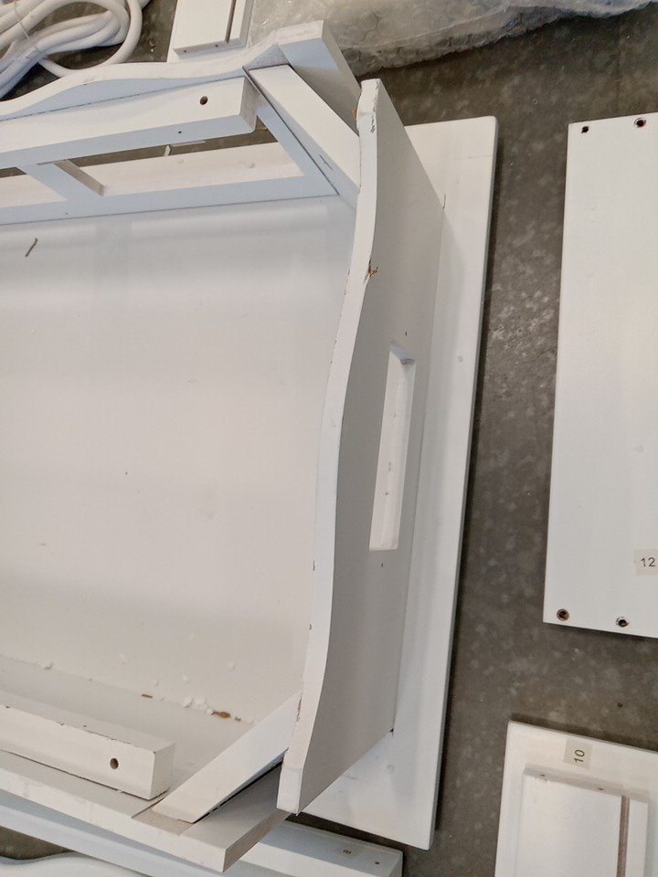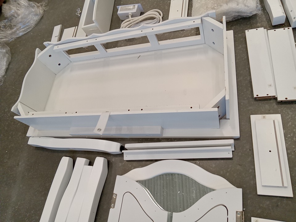 ours has no led as seen in the main image, we have found some fraying marks / chipping / scuffs and black marks on this item. this seems to be due to shipping and handling, all vital parts for assembly are present.