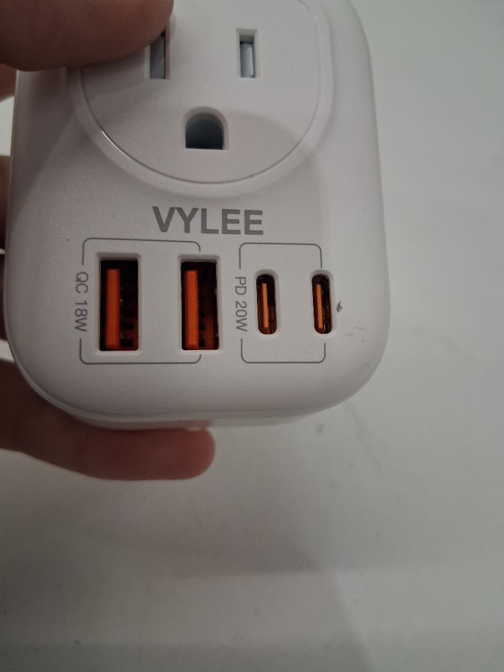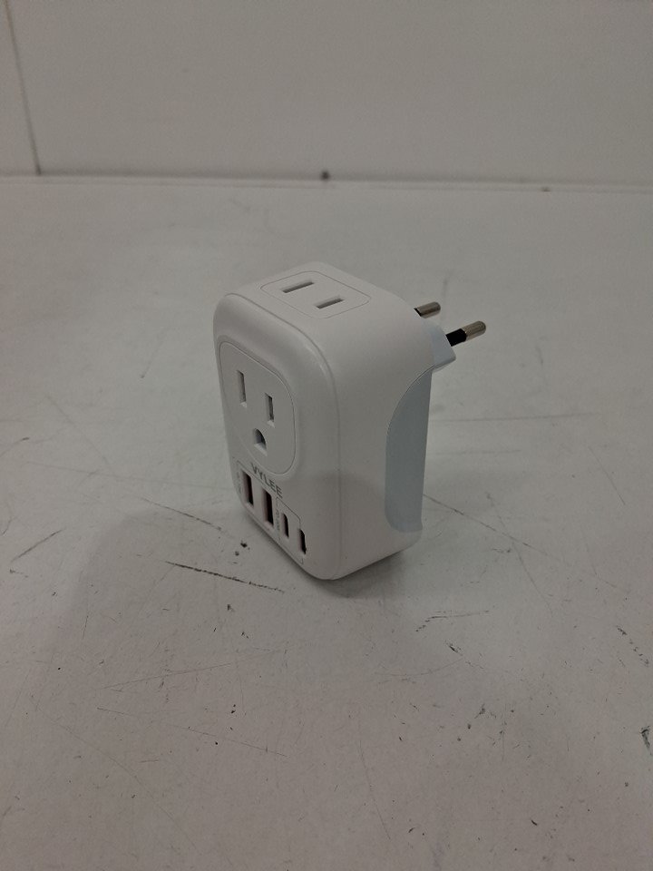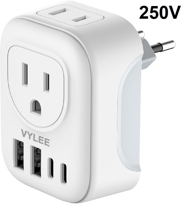 vylee european to canada/us travel plug outlet adapter with 4 usb ports and 2 usb-c ports - white