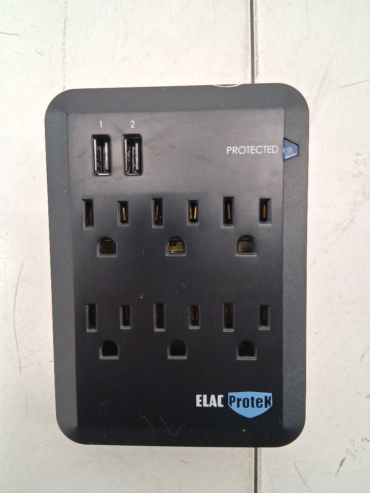 elac protek outlet surge protector/power conditioner with dual usb - 6 outlets - black/white