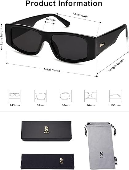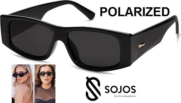 unisex sojos retro trendy rectangle polarized 80s 90s sunglasses - black - (model: sj2228).