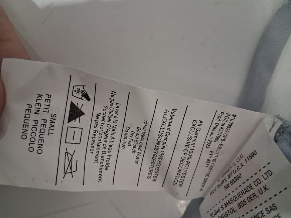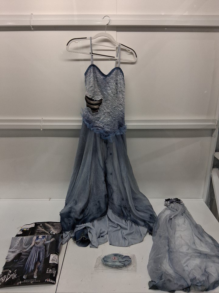 3pc women's Rubie's Corpse Bride Emily Halloween Costume with Dress/gloves and Veil - small - blue