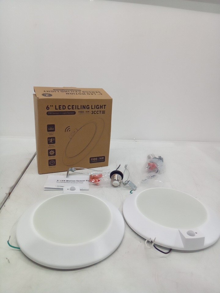 ecoeler led motion sensor ceiling light- 6", 16W, 120V, 1100LM, 3cct selectable motion activated disc light. -White