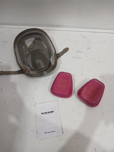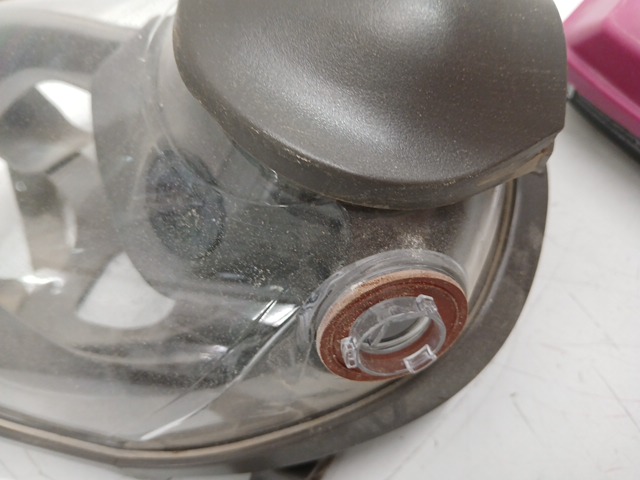 There is a significant amount of dust and debris on the mask indicating prior heavy usage.