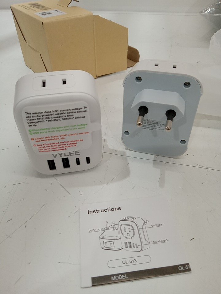 2PK yvlee international universal travel adapter - european plug - white (model: ‎OL-513)