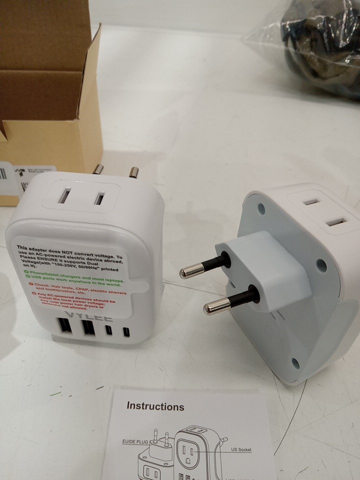 2PK yvlee international universal travel adapter - european plug - white (model: ‎OL-513)