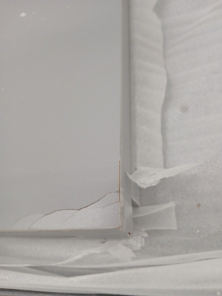 Please note this item showed up factory sealed, but appears to have taken some light damage on one of the gables due to shipping. See photos attached.