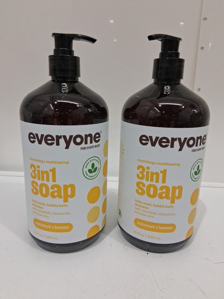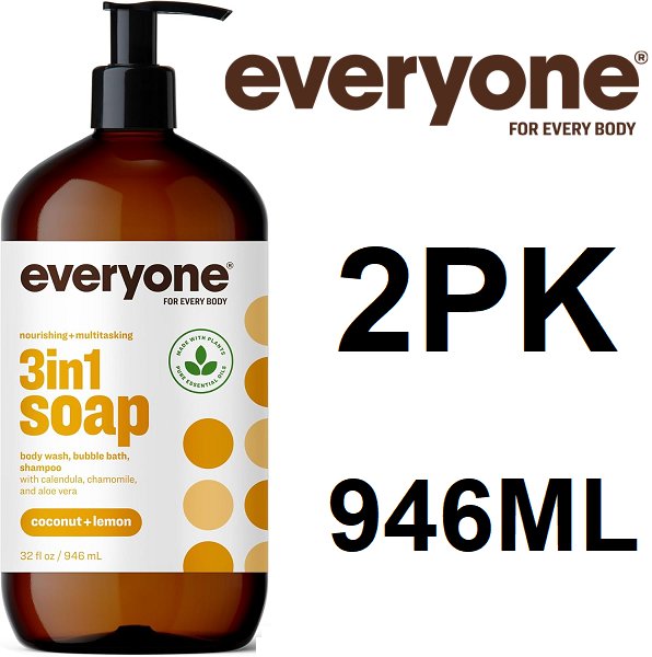2pk everyone 3-in-1 soap body wash bubble bath and shampoo - 946ml - coconut lemon