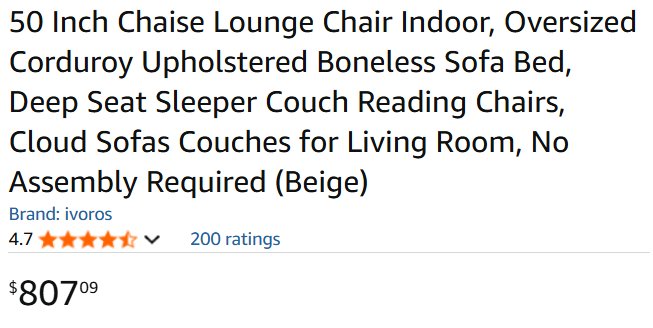 Corduroy Upholstered Boneless Sofa Bed Chaise Lounge Chair - Beige