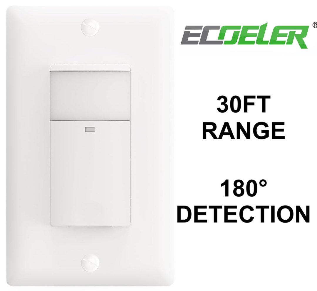 ECOELER Motion Sensor Wall Switch With Adjustable Sensitivity - 30FT Range 180° Detection (Model: YM2112