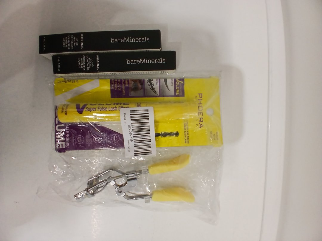4 ASSORTED PHOERA AND BARE MINERALS MAKEUP - Lash Mascara/ Eyelash Curler/ MINERAL CONCEALER - dark 5N /dark 5.5C