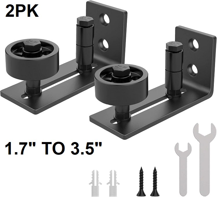 2pk WINSOON Barn Door Floor Guide, Wall Mount Bottom Adjustable Roller 8 in 1 Floor Guide For Barn Door Hardware - 1.7" to 3.5" - black