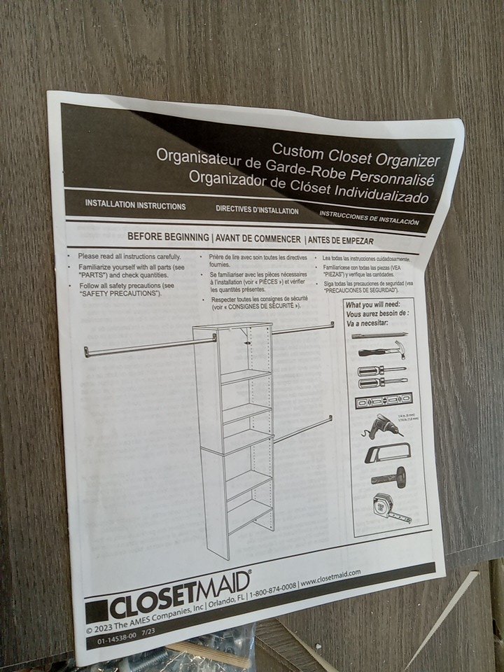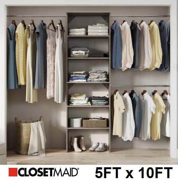 ClosetMaid BrightWood 5 shelf Solid Shelving Wood Closet System - 5ft - 10FT - ASH (MODEL:01-14538-00)