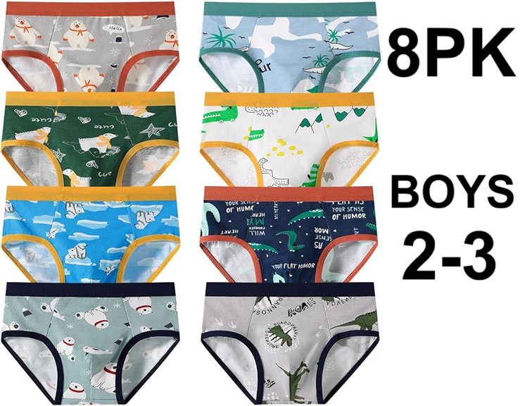 8PK BOYS COTTON UNDERWEAR - SIZE 2-3 - POLAR BEARS/DINOSAURS