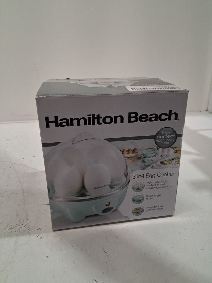 HAMILTON BEACH 3-IN-1 ELECTRIC EGG COOKER - 7 EGG CAPACITY - TEAL (MODEL: 25504)