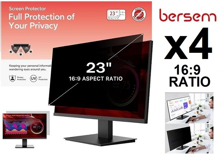 4 BERSEM anti-glare & anti-scratch Removable Computer Monitor Privacy Screen Filter - 23" - 16:9 Aspect Ratio