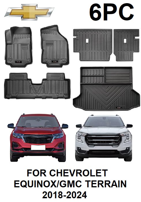 6pc yonugli custom all weather tpe rubber protection floor mats for chevrolet equinox/gmc terrain accessories 2018-2024 - black (model: ‎XFL-TJZ)