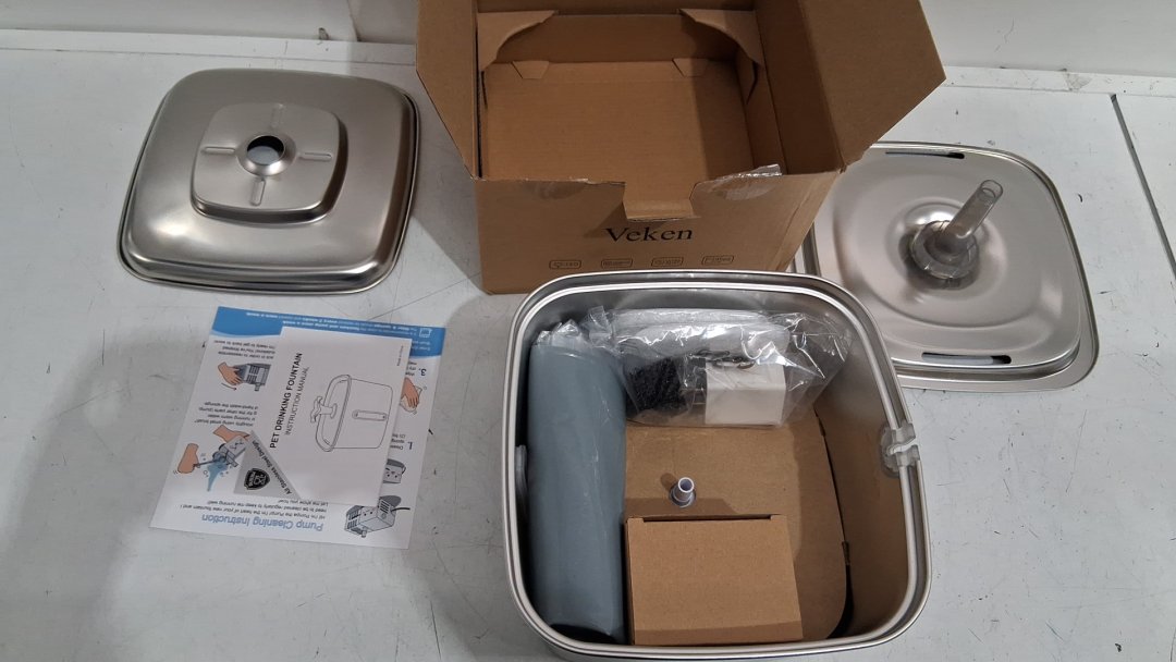 veken Stainless Steel pet Water drinking Fountain - 95oz - silver