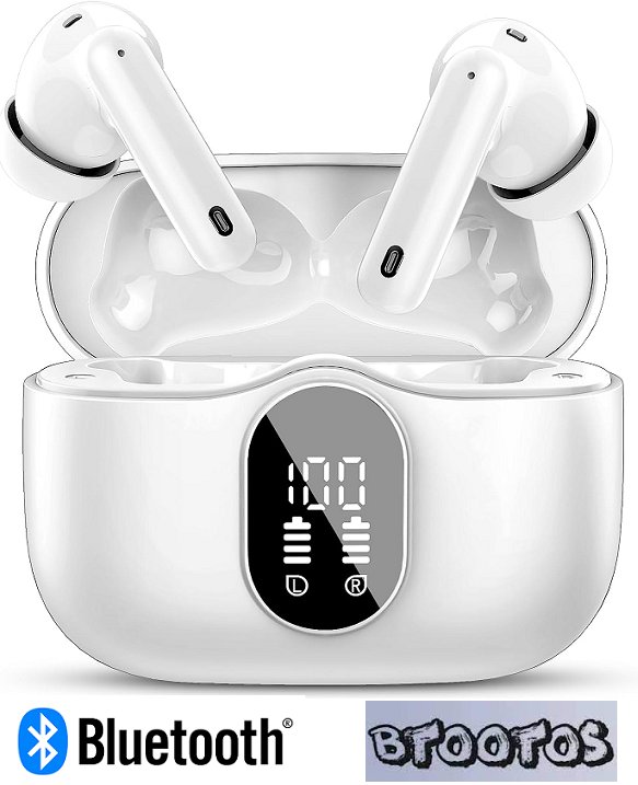 BTOOTOS TRUE Wireless BLUETOOTH Earbuds - Wireless BLUETOOTH IN-EAR HEaDphones with ENC Noise Cancelling Mic, IP7 Waterproof, Touch Control - White (MODEL: A90 PRO)