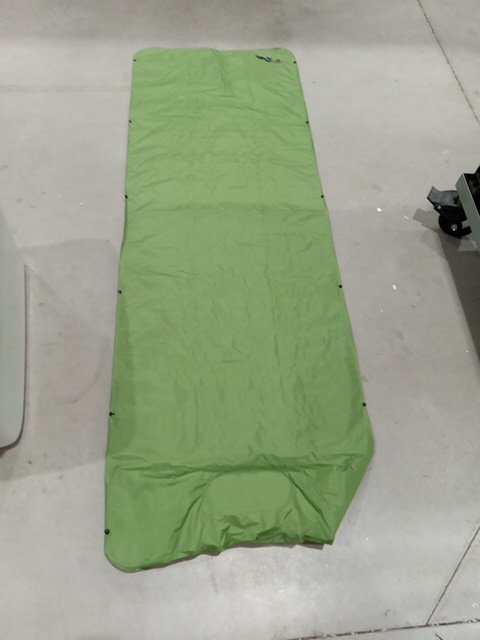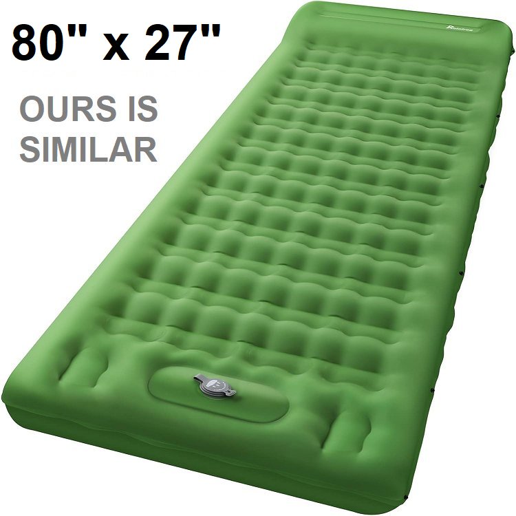 unbranded inflatable camping sleeping mat pad with built-in foot pump - single - 80" x 27" - blue/green