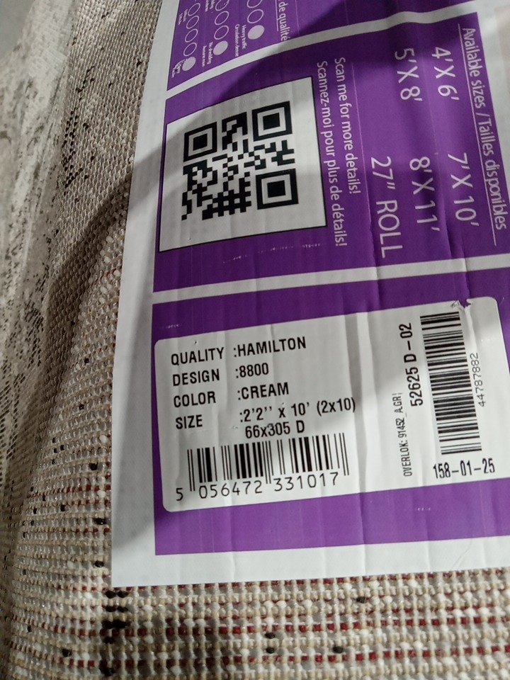 KOSHANI HAMILTON COLLECTION AREA RUG - 2FT 2" x 10FT - CREAM - (DESIGN: 8800)
