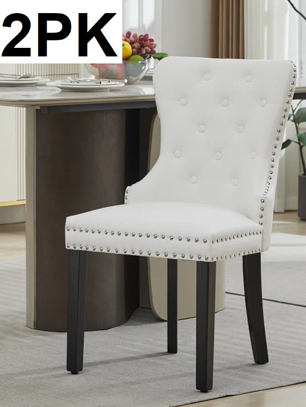 2PK Winston Porter PU Leather Dining Chairs with Pull Ring - white