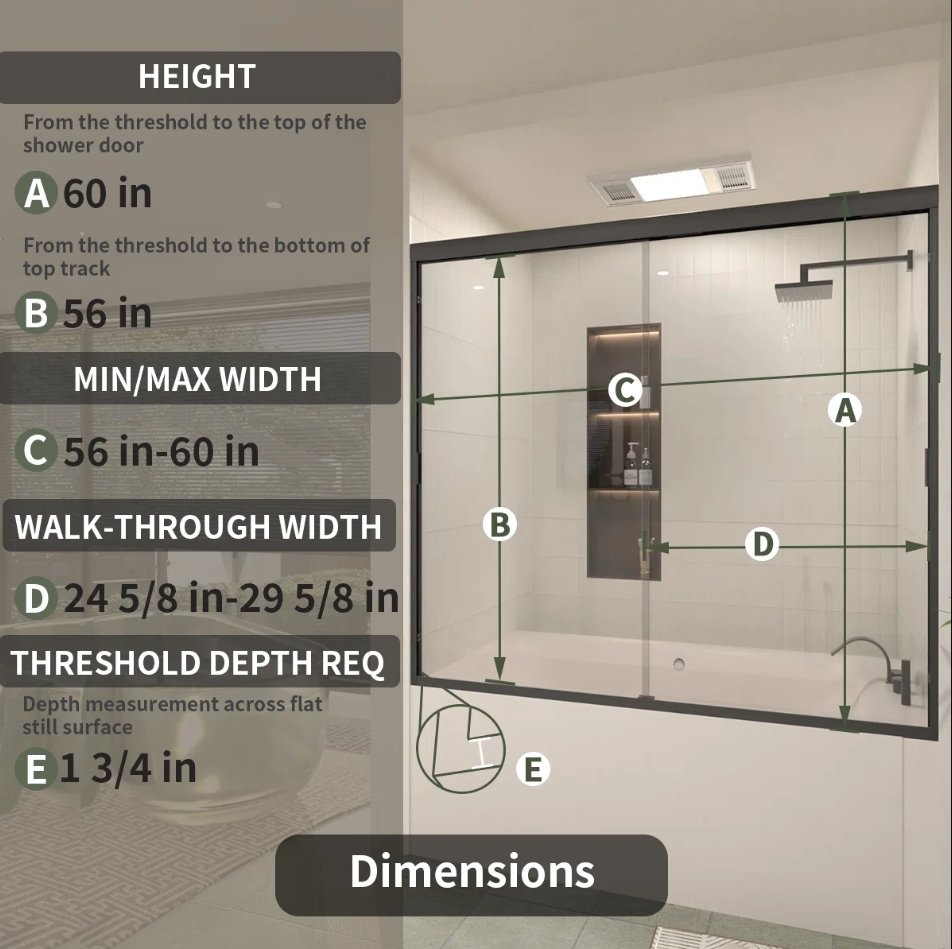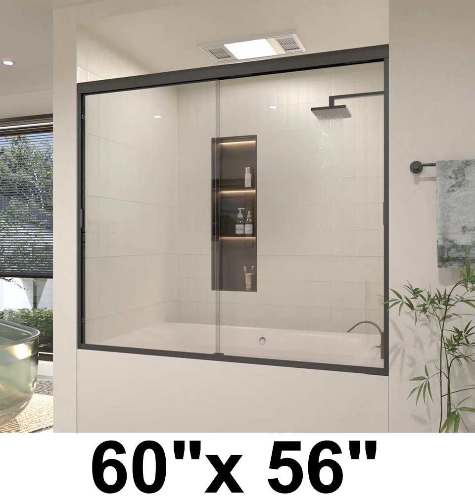 taimei sliding semi-frameless tub/shower door - 60" x 56" - matte black frame - (model: 37-5660mb)