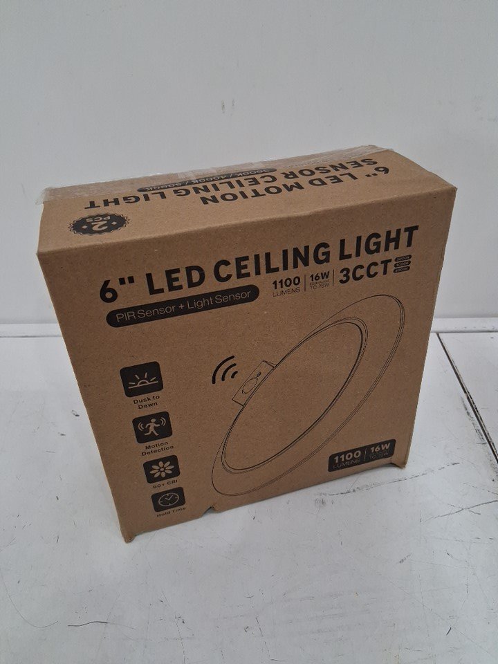 2Pk ECOELER PIR Motion Sensor Ceiling Light - 16W - 1000Lm - 3000k/4000k/5000k - 6" - white (model: CDR616C-9P3X5-WH)
