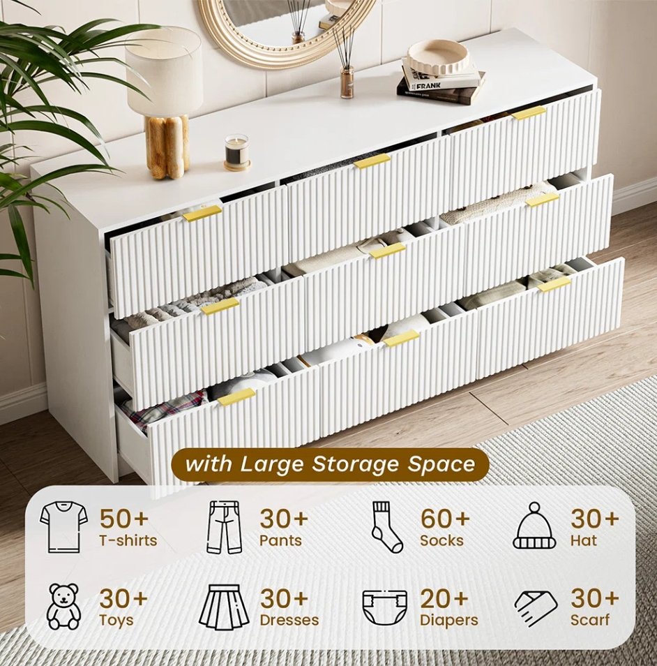 mercer41 9 drawer dresser with fluted panels - 63" x 16" x 31" - white - (model: mht-f11010wh)
