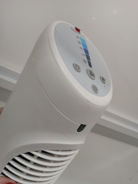 there is some light marks on the top of the fan as well as the fan base not fully closing. tested for power . missing remote.