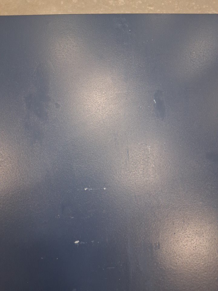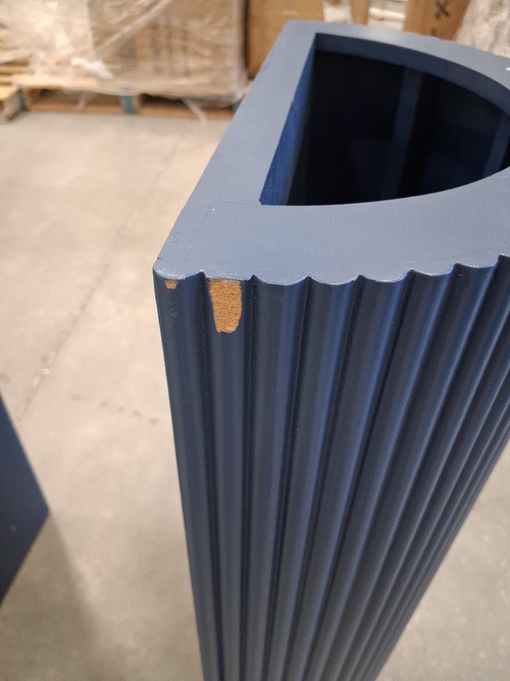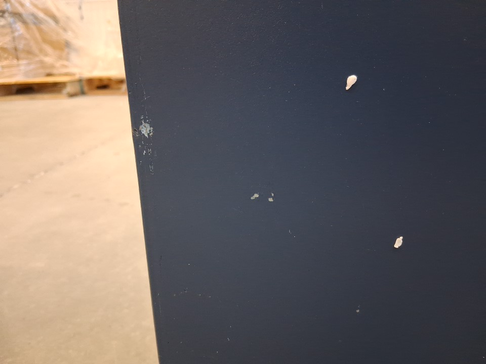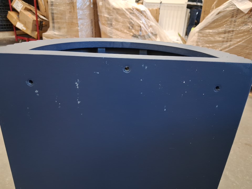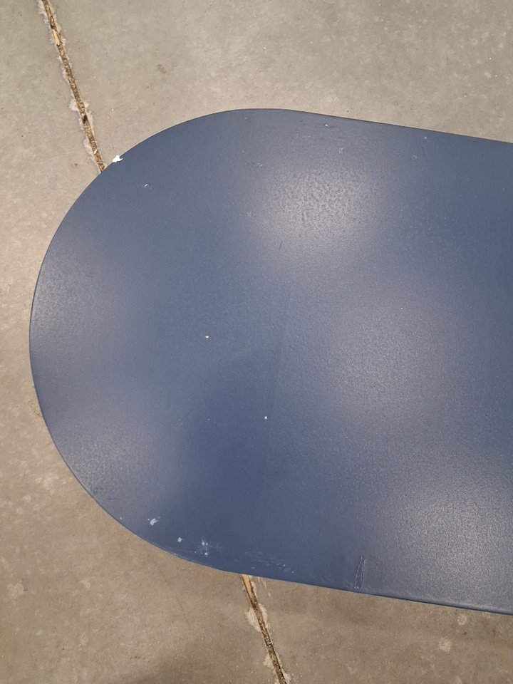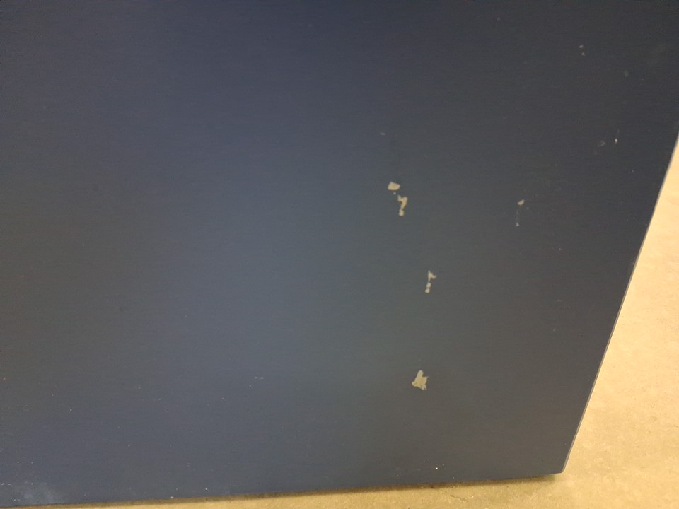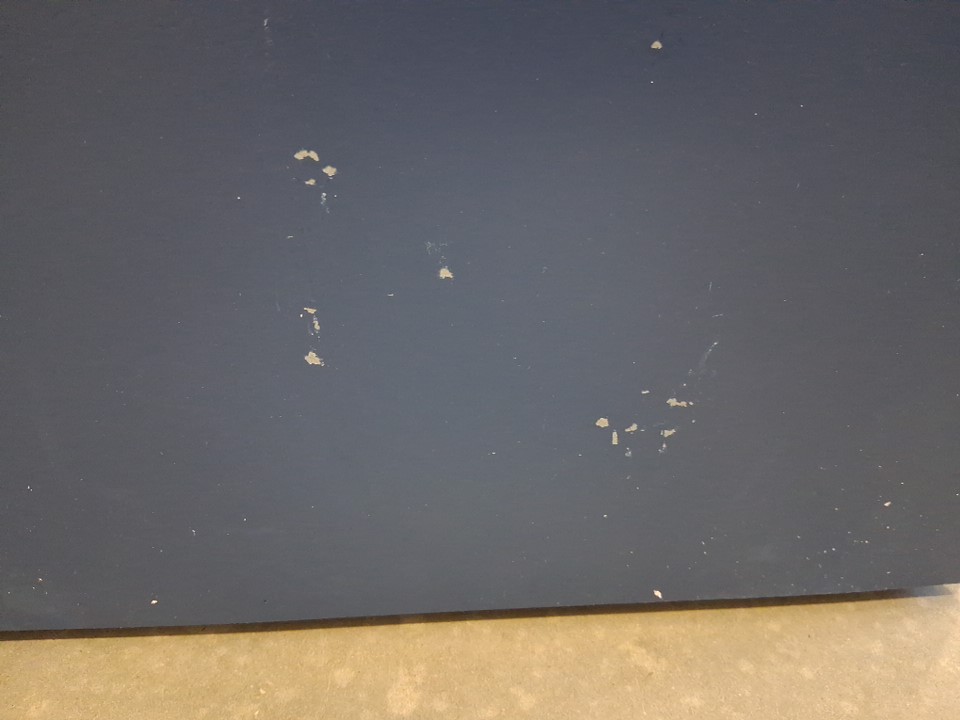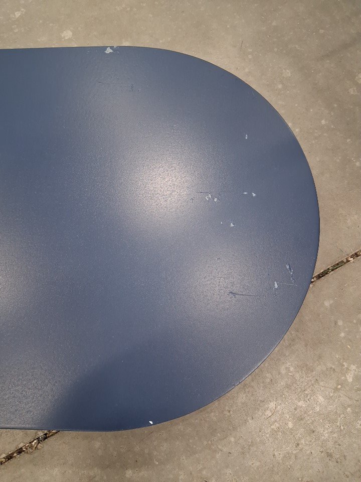 Numerous small scuffs on the surface of the table and the inside of the legs, as well as a small chip out of the top of one leg and the side of the table surface - see photos. As there are no obvious signs of previous ownership or assembly, this damage is likely just a result of shipping/rough handling.