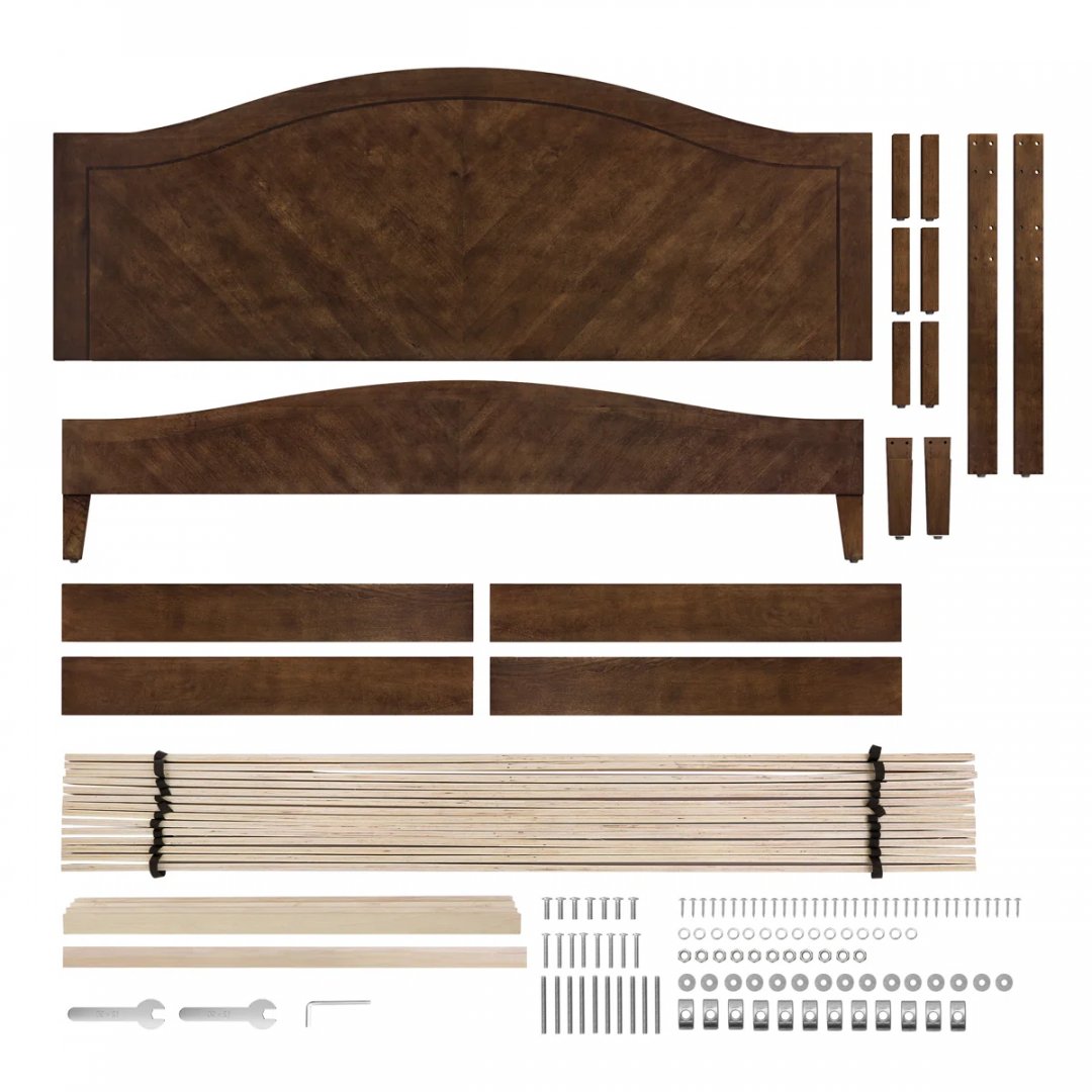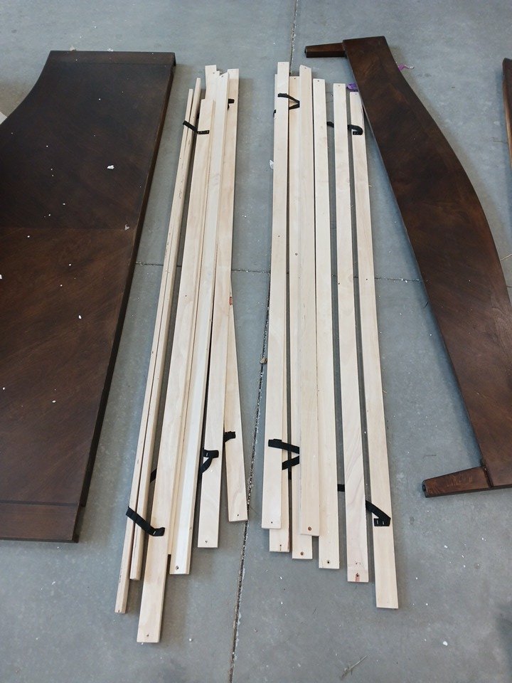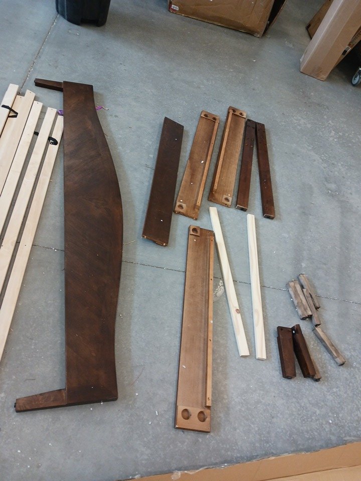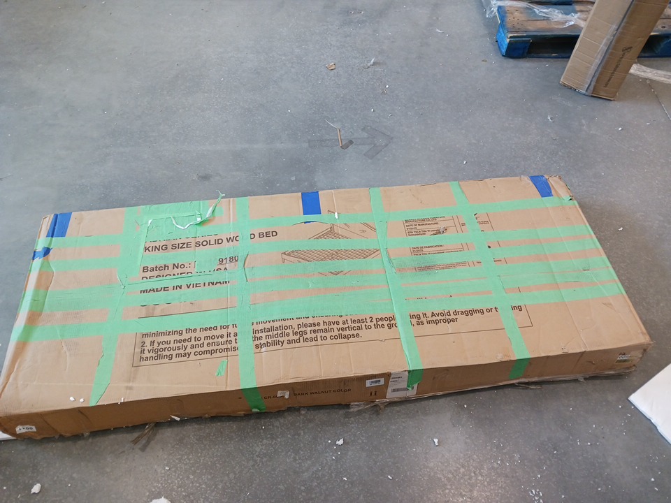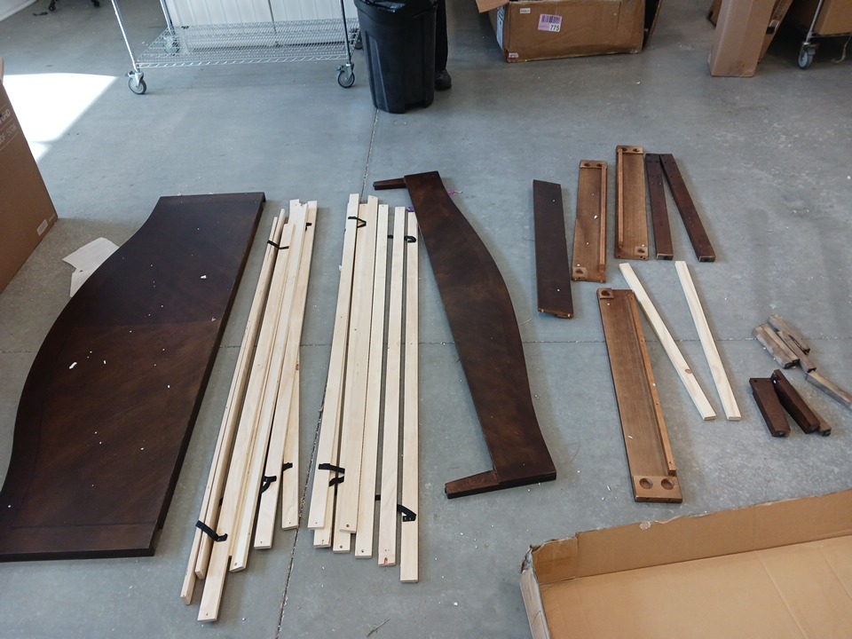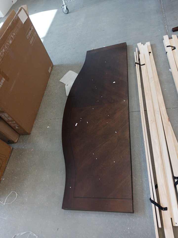 We could not confirm if all the generic hardware components are present, so buyers may need to source standard replacement parts separately to ensure full assembly. The main structural pieces, including the headboard, side rails, and slats, are in good condition with no visible damage. Minor scuffs or surface marks may be present from previous handling and storage, but these do not affect functionality.