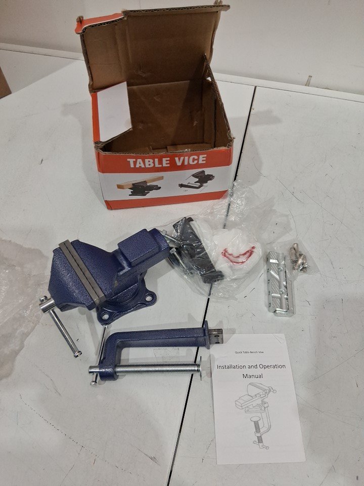 mytec bench/table multifunctional jaw clamp-on vise with quick adjustment - universal rotate 360° - 3.3" - blue