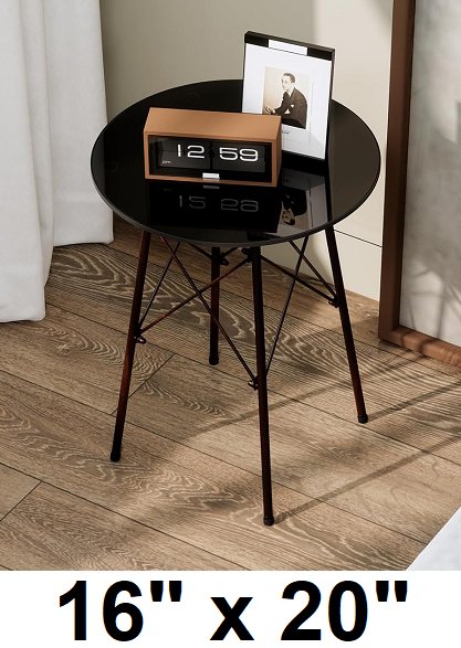 XIV outdoor side table round metal end table with glass top - 16" x 20" - black/brown/green