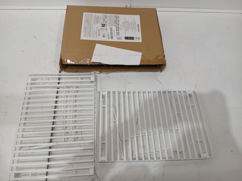 2PK AMAZONBASICS STACKABLE KITCHEN STORAGE SHELVES - 12.5" X 8" X 4.5" - WHITE (MODEL: WK810053)