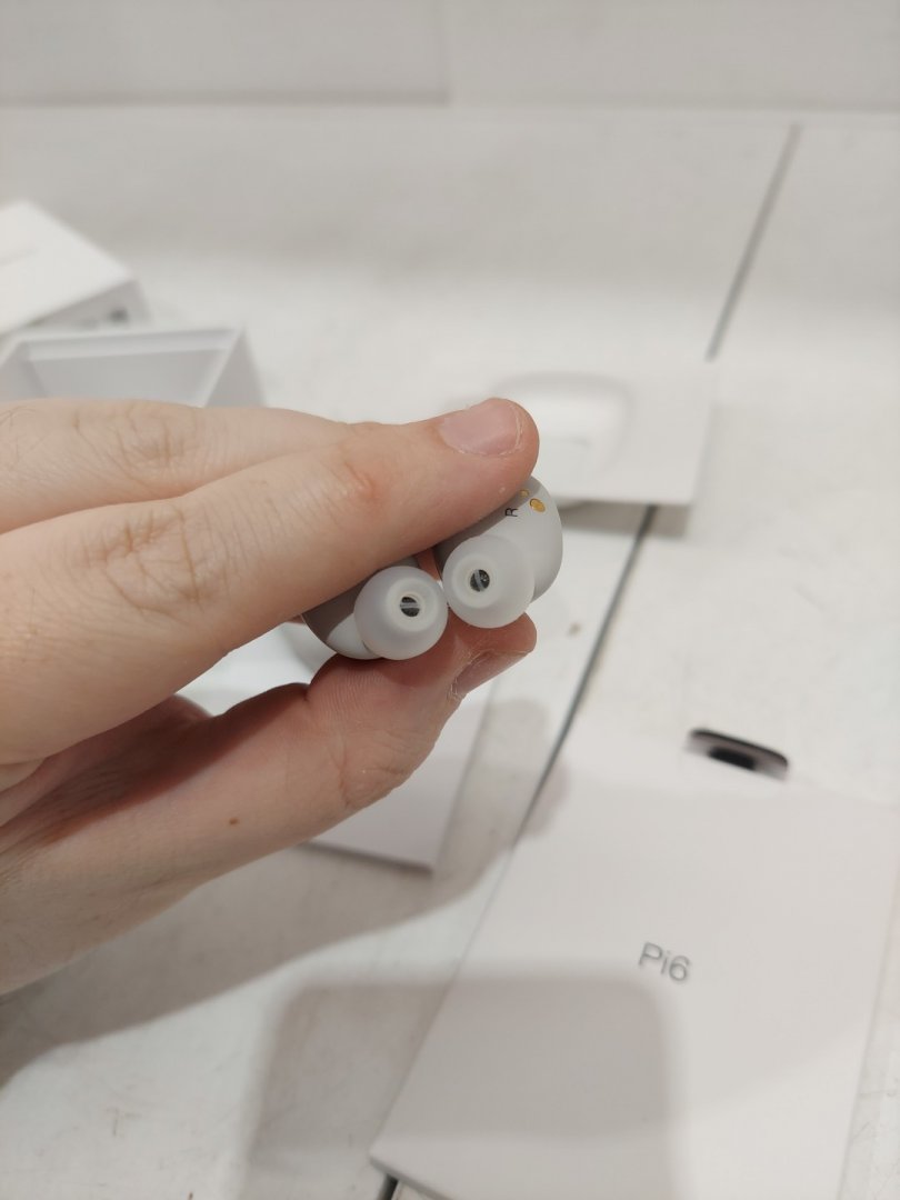 Item arrived with signs of light use on the inner ear silicone covers and one of the extra sets of ear covers is not included but these can be replaced. tested for power and sound with bluetooth.
