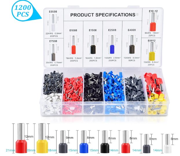 1200pc mzylan Ferrule Crimping Tool Kit - assorted sizes - multicolour (MODEL: cp29120)