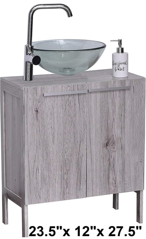 Evideco Non-Pedestal Under Sink Storage Vanity Cabinet - 23.5"x 12"x 27.5" - Washed Grey OAK (MODEL-9900626)