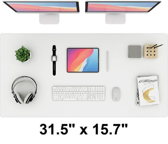 K KNODEL ECO-FRIENDLY LEATHER Desk Mat- 31.5" x 15.7"- White/beige