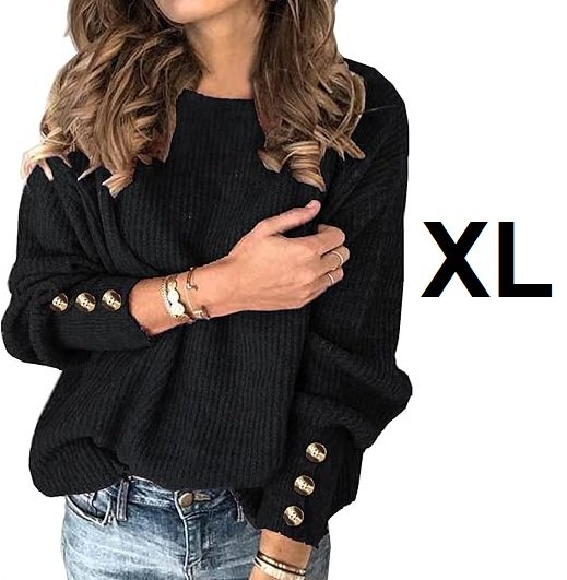 women's leiyee pullover ribbed knit jumper top with cuff buttons - extra large - black