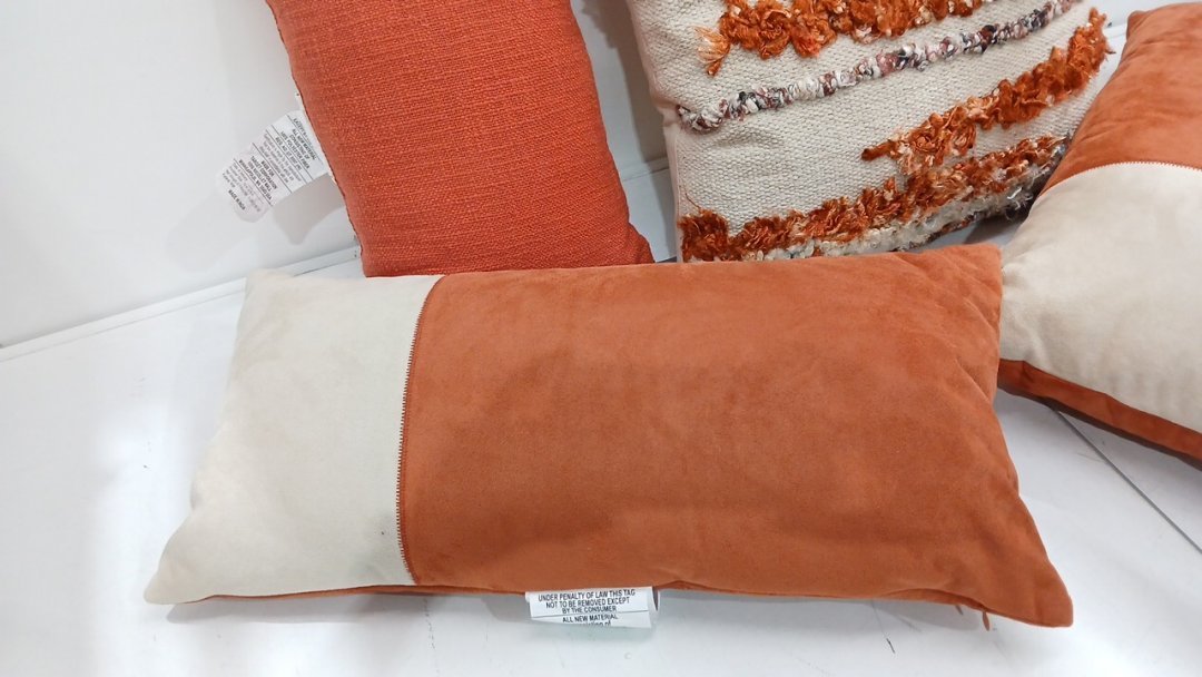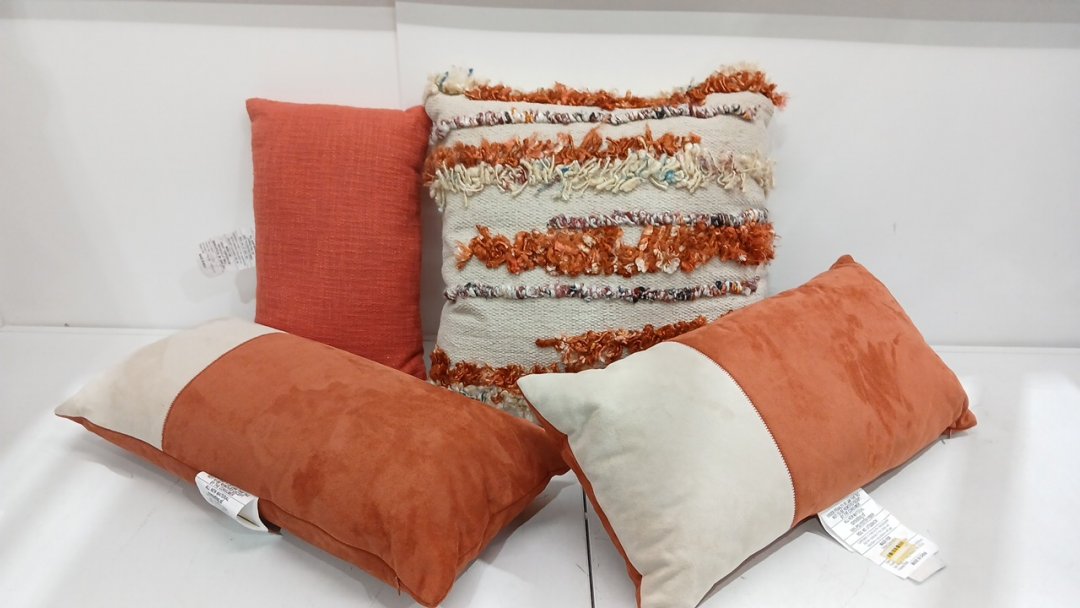 4 assorted textured indoor/outdoor throw pillows - 12" x 18" / 12" x 24" / 20" x 20" - rust/beige