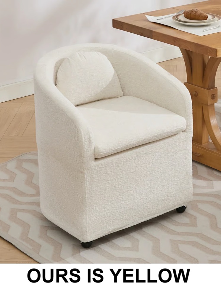 Chenille Fabric Dining Armchair With Back Cushion And Universal Wheels - YELLOW