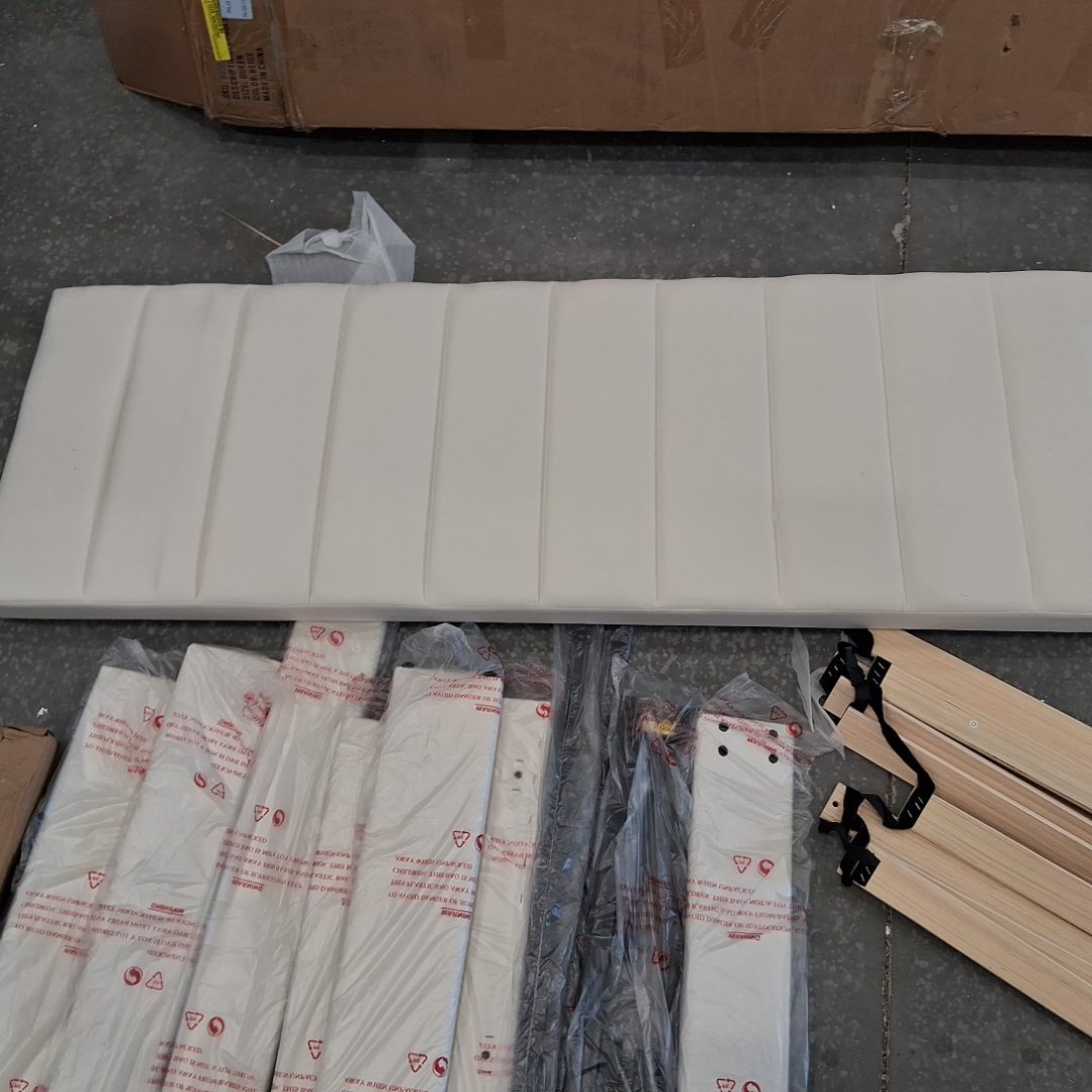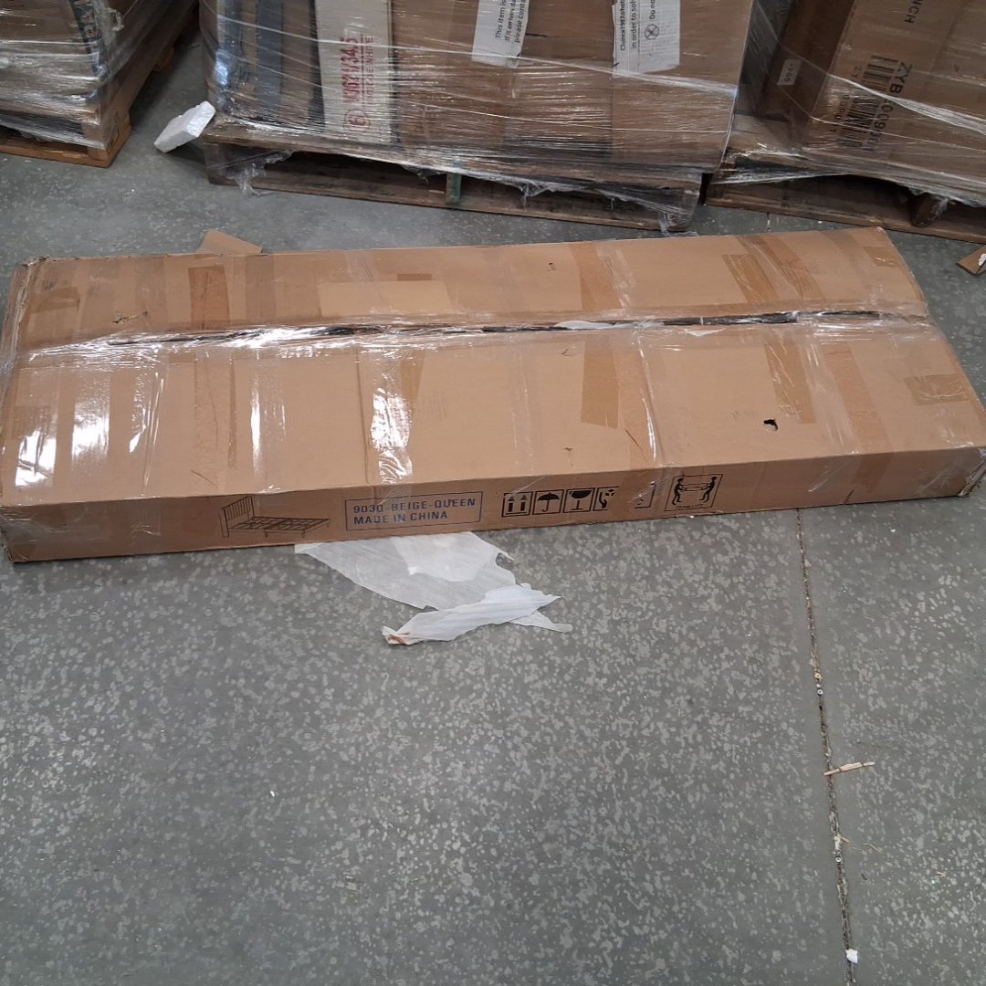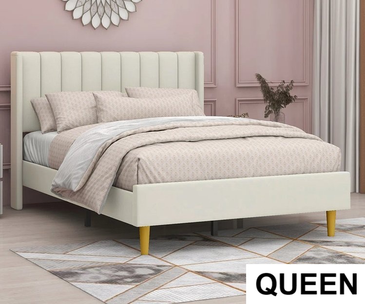 Wade Logan Eriksay Low Profile Upholstered Platform Bed with Wingback Headboard - QUEEN - Cream/White