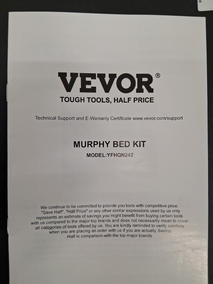 This listing includes the hardware kit only for a horizontal Queen size murphy bed.